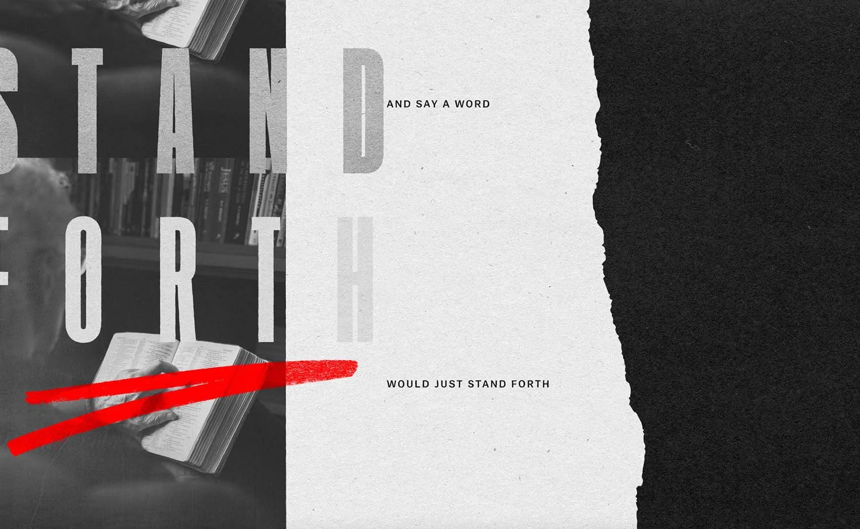 Three elements recur across the system without announcing themselves: handwritten script tying each episode to a human voice and a specific moment in time; scripture as a visual substrate beneath photography and type; and red — borrowed from the parent brand, deployed rarely enough that every use lands.